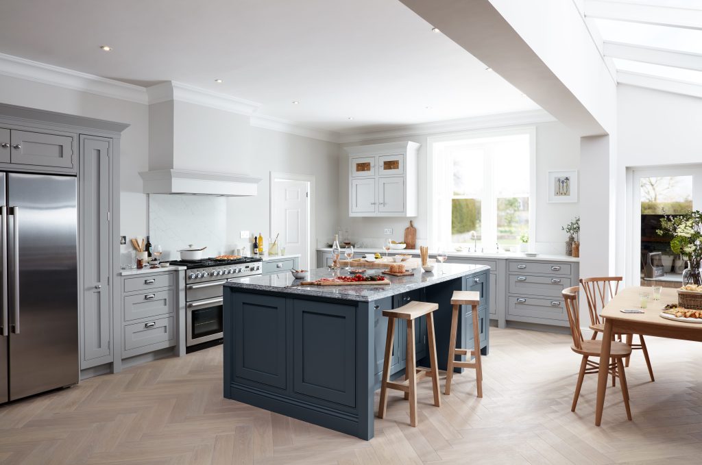 A good way to balance current trends with timeless design is to keep the ‘expensive bits’ (layout, cabinetry and worktops) classic, then introduce trend-led touches through easy-to-change details like paint, handles, lighting and accessories.